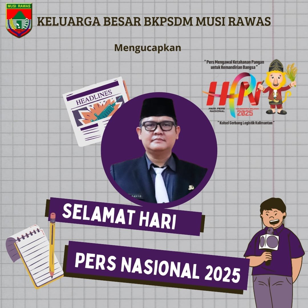 BKPSDM Musi Rawas Mengucapkan Hari Pers Nasional Tahun 2025 admin09/02/202502/03/202590 Dilihat Kepala BKPSDM Musi Rawas H David Pulung Post Views: 90 Pos terkaitWakil Bupati Musi Rawas H. Suprayitno Hadiri Operasi Pasar Murah Yang Diadakan Kejaksaan NegeriBupati Hj. Ratna Machmud Lantik Pejabat Eselon II di Lingkungan Pemkab Musi RawasAr.Dion Hary Kader GP Ansor Musi Rawas Terima Penghargaan Sebagai Arsitek Gedung Aswaja CenterWakil Bupati H. Suprayitno Meresmikan Program Pemberdayaan Pesantren BSI Usaha Peternakan Bebek PetelurBupati Ratna Machmud Kembali Dianugrahi Penghargaan Universal Health CoverageBupati Hj. Ratna Machmud Berikan Penghargaan Pemenang Lomba PHBS dan Posyandu Tingkat Provinsi Sumsel