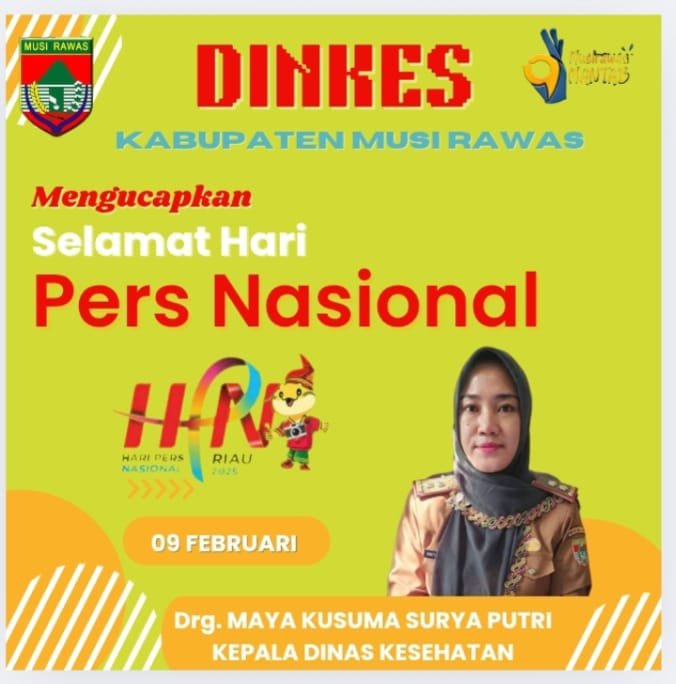 Dinas Kesehatan Musi Rawas Mengucapkan Hari Pers Nasional 2025 admin09/02/202506/04/202574 Dilihat Kepala Dinas Kesehatan Musi Rawas drg. Maya Kusuma Surya Putri Post Views: 74 Pos terkaitWakil Bupati Musi Rawas H. Suprayitno Hadiri Operasi Pasar Murah Yang Diadakan Kejaksaan NegeriBupati Hj. Ratna Machmud Lantik Pejabat Eselon II di Lingkungan Pemkab Musi RawasAr.Dion Hary Kader GP Ansor Musi Rawas Terima Penghargaan Sebagai Arsitek Gedung Aswaja CenterWakil Bupati H. Suprayitno Meresmikan Program Pemberdayaan Pesantren BSI Usaha Peternakan Bebek PetelurBupati Ratna Machmud Kembali Dianugrahi Penghargaan Universal Health CoverageBupati Hj. Ratna Machmud Berikan Penghargaan Pemenang Lomba PHBS dan Posyandu Tingkat Provinsi Sumsel