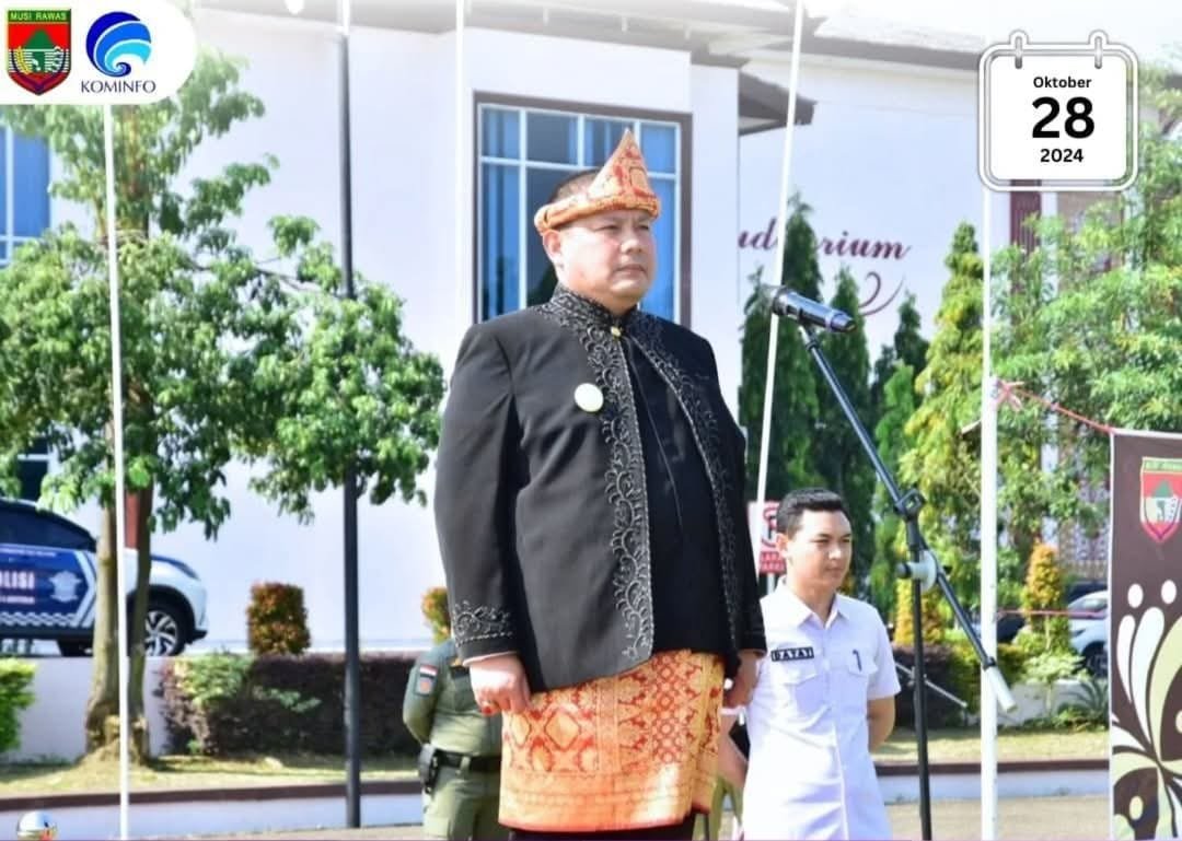 PJs. Bupati Musi Rawas Deva Octavianus membacakan sambutan Menteri Pemuda dan Olahraga pada Upacara Peringatan Hari Sumpah Pemuda 28 Oktober 2024.
