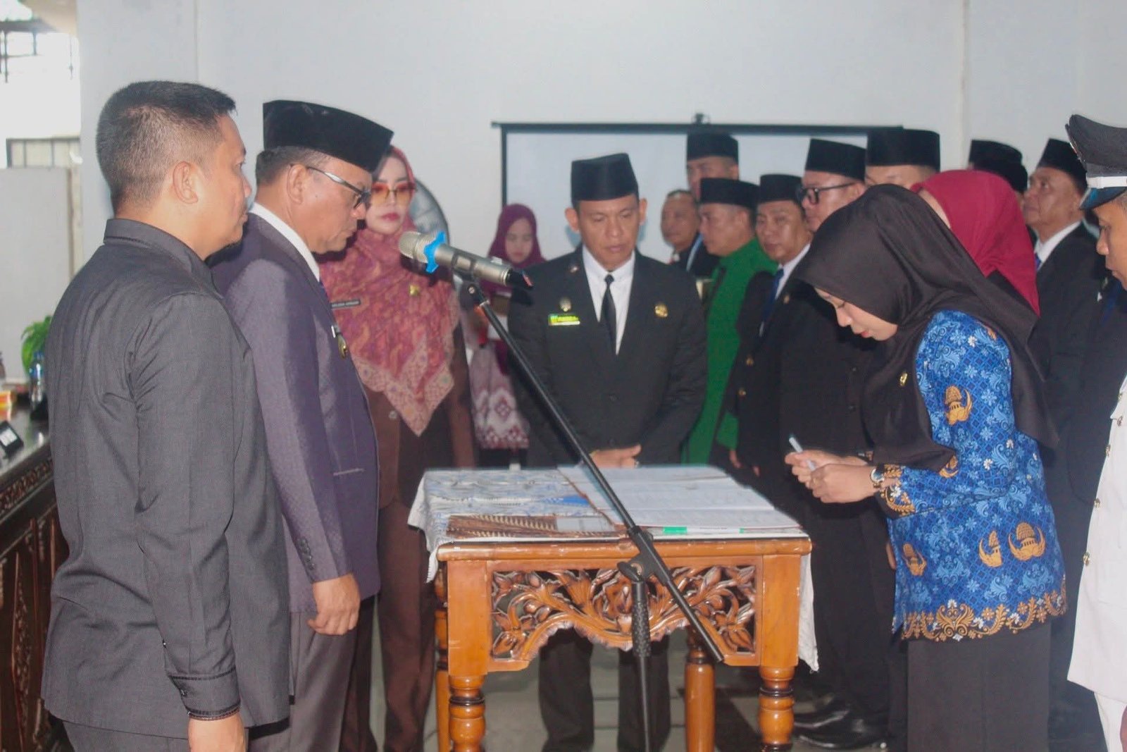 TEBARKAN – EMPAT LAWANG – Bupati Empat Lawan Sumatra Selatan Dr. H. Joncik Muhammad, S.Si., S.H., M.M., M.H., secara resmi melantik sejumlah pejabat baru untuk mengisi kekosongan jabatan di lingkungan Pemerintah Kabupaten Empat Lawang. Pelantikan ini dilakukan untuk mengisi posisi yang ditinggalkan pejabat sebelumnya karena purna tugas, mengundurkan diri, atau kebutuhan restrukturisasi organisasi. Acara pelantikan berlangsung khidmat dan dihadiri oleh para pejabat, keluarga, serta tamu undangan, Kamis (11/9/2025).