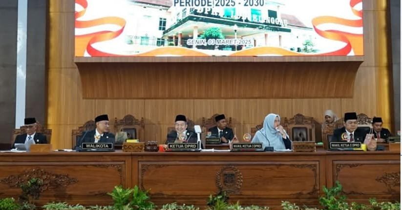 TEBARKAN – LUBUKLINGGAU – Rapat Paripurna DPRD Kota Lubuklinggau dalam rangka mendengarkan pidato Wali Kota Lubuklinggau dan Wakil Wali Kota Lubuklinggau periode 2025-2030 yang dihadiri langsung Wali Kota Lubuklinggau, H.Rachmat Hidayat di ruang rapat Paripurna DPRD Kota Lubuklinggau, Senin (03/03/2025).