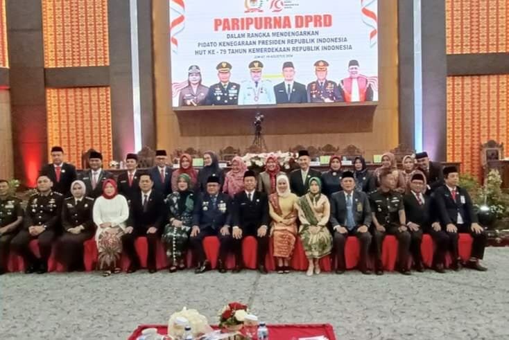TEBARKAN.COM – LUBUKLINGGAU-Penjabat (Pj) Wali Kota Lubuklinggau, H Trisko Defriyansa bersama jajaran menghadiri Rapat Paripurna Istimewa DPRD Kota Lubuklinggau dengan agenda mendengarkan pidato kenegaraan Presiden Republik Indonesia dalam rangka HUT ke-79 Kemerdekaan Republik Indonesia di ruang rapat paripurna DPRD Kota Lubuklinggau, Jumat (16/08/2024).