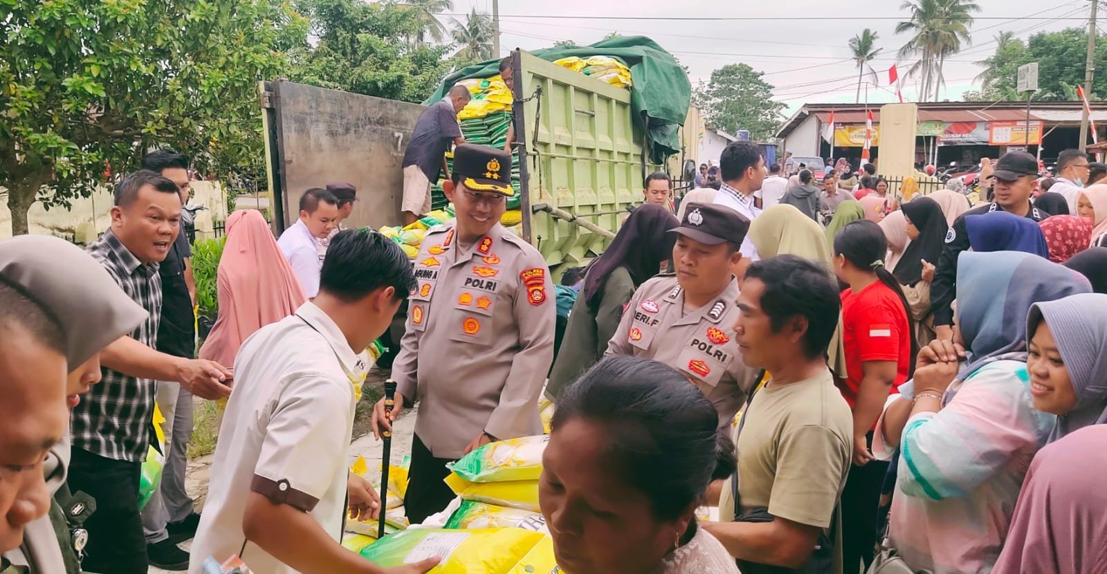 “Dan, untuk hari ini disediakan 20 ton beras, dengan pelaksanaan tiga kali pembagian dalam satu hari,” kata kapolres